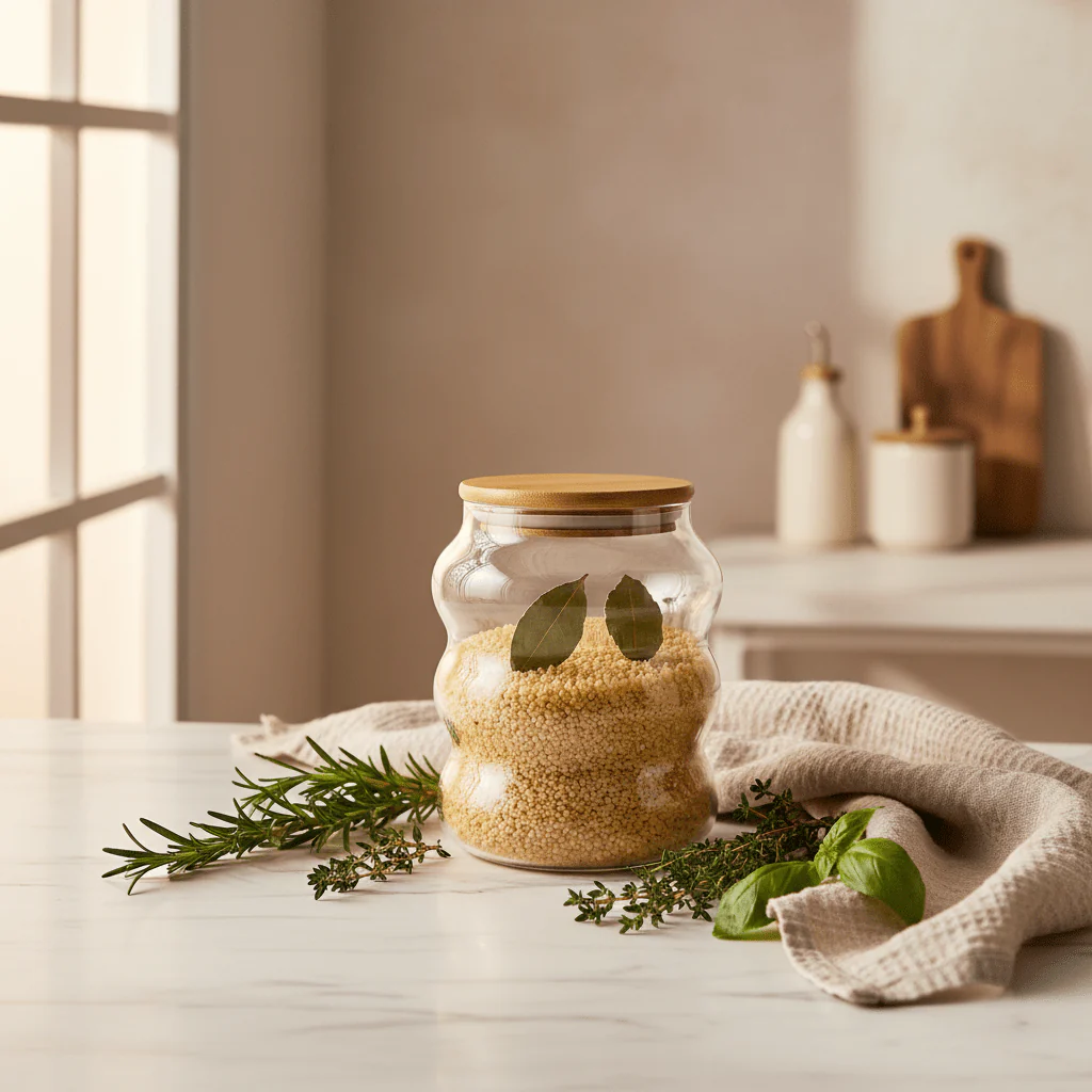 The natural eco bamboo lid creates a secure airtight seal, locking in freshness while keeping moisture and air out — ideal for storing spices, coffee, tea, nuts, grains, candy, and more.