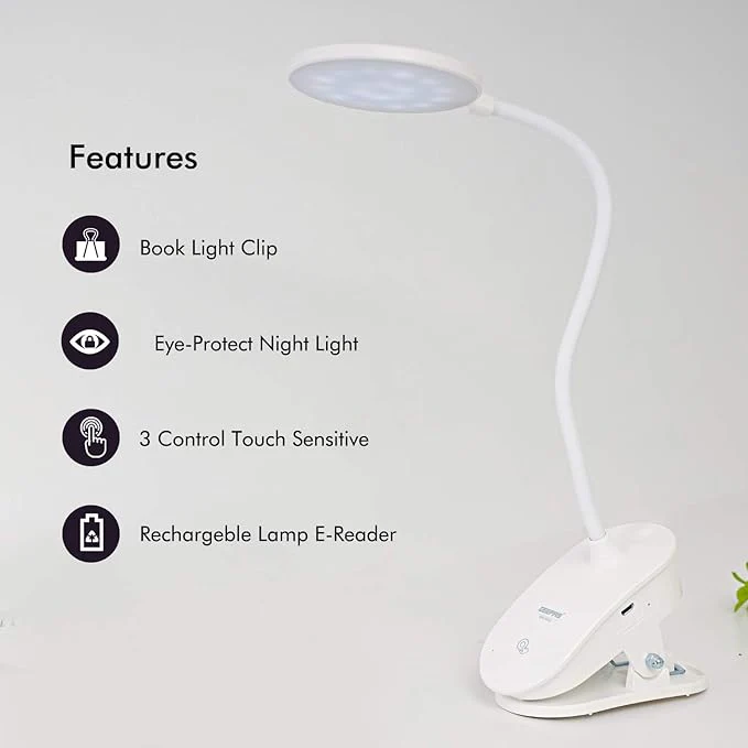 - ENERGY-EFFICIENT LED TECHNOLOGY, MULTI-USE CLIP- ADJUSTABLE - The desk lamp can save up to 85% of energy compared to other reading lights. It uses 18 SMD LEDs to give perfect reading light.